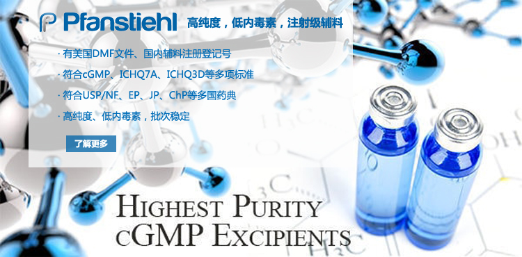 “熱烈祝賀Pfanstiehl的注射級甘氨酸Glycine(G-140)喜獲CDE登記號F20250000403, 這是Pfanstiehl產品獲得的第18個CDE登記號!”甘氨酸在醫藥輔料制劑中應用廣泛,, 可作為緩沖劑,增溶劑,穩定劑等,具有諸多優勢。Pfanstiehl秉承一貫高品質理念,為滿足全球生物制藥行業對于高品質甘氨酸的需求,隆重推出的注射級甘氨酸Glycine (G-140), 具有超高純度,超低內毒素,超低金屬殘留的特點,單獨檢測29種金屬離子,并且新增DNA,RNA,DNA酶,RNA酶和脂肪酶,亞硝酸鹽等多項質量指標的檢測,符合多國藥典規定(USP, EP, BP, JPE, ChP),可用于生物治療性藥物和疫苗的生產。產品信息:· 產品名稱:Glycine, High Purity, Low Endotoxin, Low Metals, USP, EP, BP, JPE, ChP (G-140)· 中文名稱:甘氨酸· 分子式:C2H5NO2· 分子量:75.07 g / mol· CAS號:56-40-6· 產品貨號:G-140產品特點: · 超高純度,超低內毒素,超低微生物含量,超低金屬雜質殘留· 質量指標新增DNA,RNA,DNA酶,RNA酶,脂肪酶和亞硝酸鹽檢測· 符合多國藥典:USP, EP, BP, JPE, ChP· 符合ICH Q3D標準· 符合GMP標準· 已獲DMF和CDE登記號 產品應用:· 緩沖劑· 穩定劑· 增溶劑如果您對Pfanstiehl注射級別Glycine G-140感興趣,歡迎聯系Pfanstiehl 中國區代理商北京西美杰科技有限公司獲得如下詳細的產品概況說明文件和測試樣品。Pfanstiehl Inc.最新產品系列如下,歡迎聯系北京西美杰科技有限公司獲取100g裝免費樣品。北京西美杰科技有限公司為Pfanstiehl中國代理,為客戶提供完善的技術支持與售后服務。歡迎撥打西美杰客服電話400-050-4006或者登陸網站www_xmjsci_com.277161.com了解更多信息。 更多>